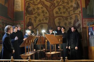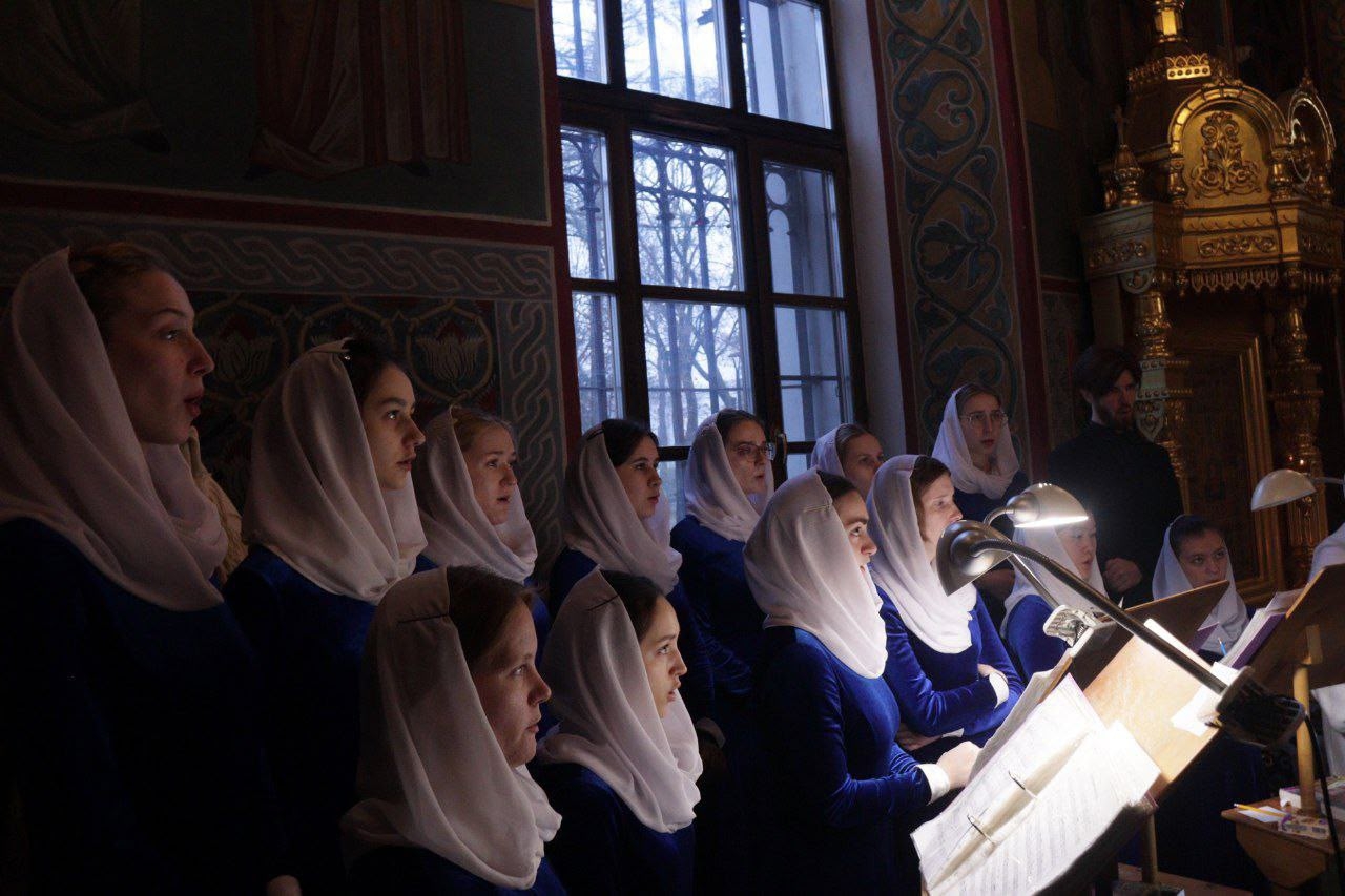 Богослужебные песнопения исполнил хор Калужской духовной семинарии под управлением воспитанника IV курса Матвеева Кирилла и хор Калужского духовного училища под управлением преподавателя училища Морарь Марии Витальевны.