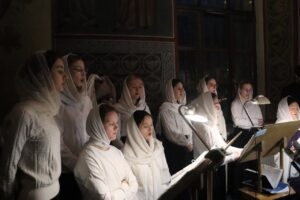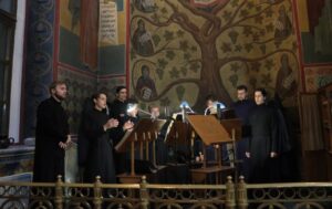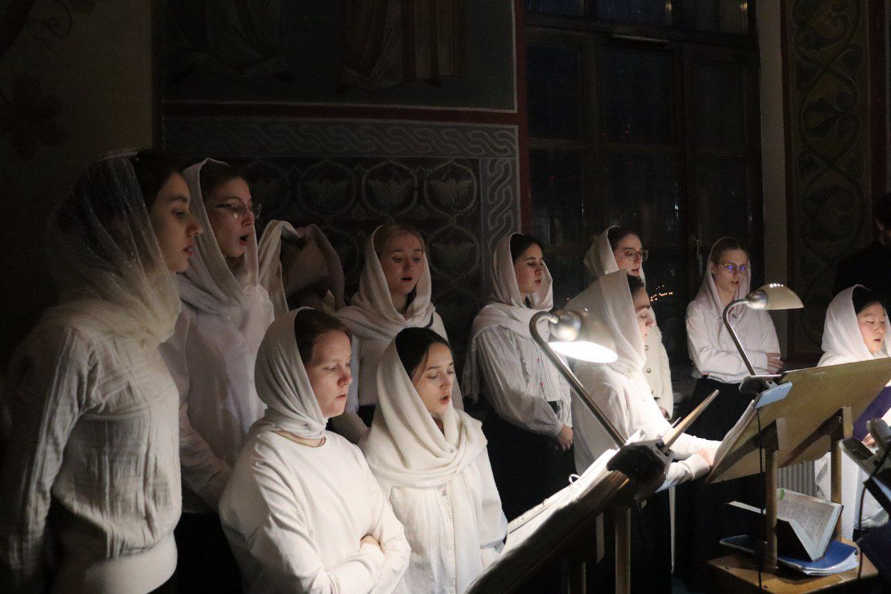 Богослужебные песнопения исполнил хор Калужской духовной семинарии под управлением воспитанника IV курса Матвеева Кирилла и хор Калужского духовного училища под управлением воспитанницы IV курса Экономовой Марии.