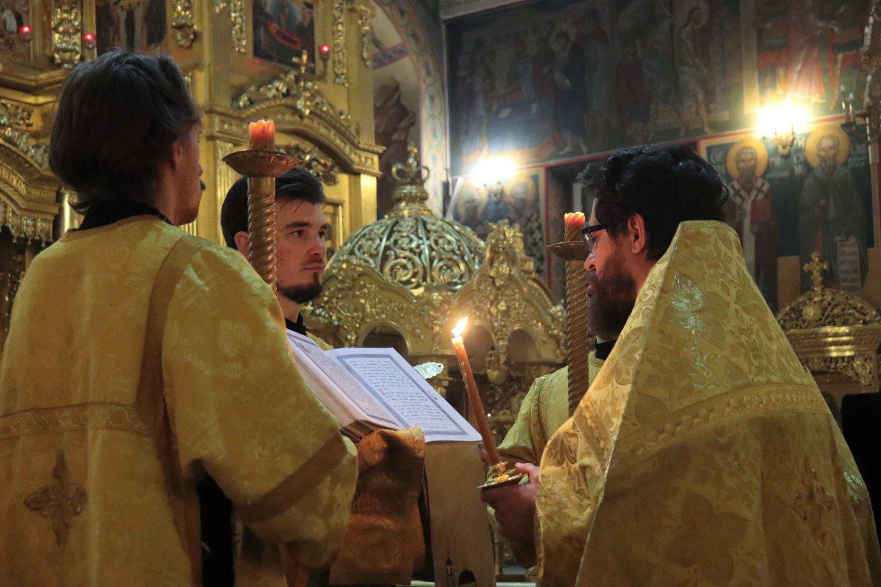 6 декабря 2025 года в канун Недели 26-ой по Пятидесятницы в Свято-Троицком кафедральном соборе города Калуги было совершено Всенощное бдение, которое возглавил ключарь собора иерей Максим Лихонин.