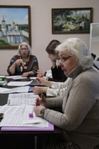 Комиссию составили: проректор по учебной работе Чеппель М.А. (председатель), заведующий отделением «Хоровое дирижирование» (Регентское) Зотова И.А., методист Коркина Л.Н., преподаватели: Музыченко Е.Е., Дубова Е.В., Долгих М.С. и Морарь М.В. Аккомпанировала Соколова Е.В. и Михновец К.Г.