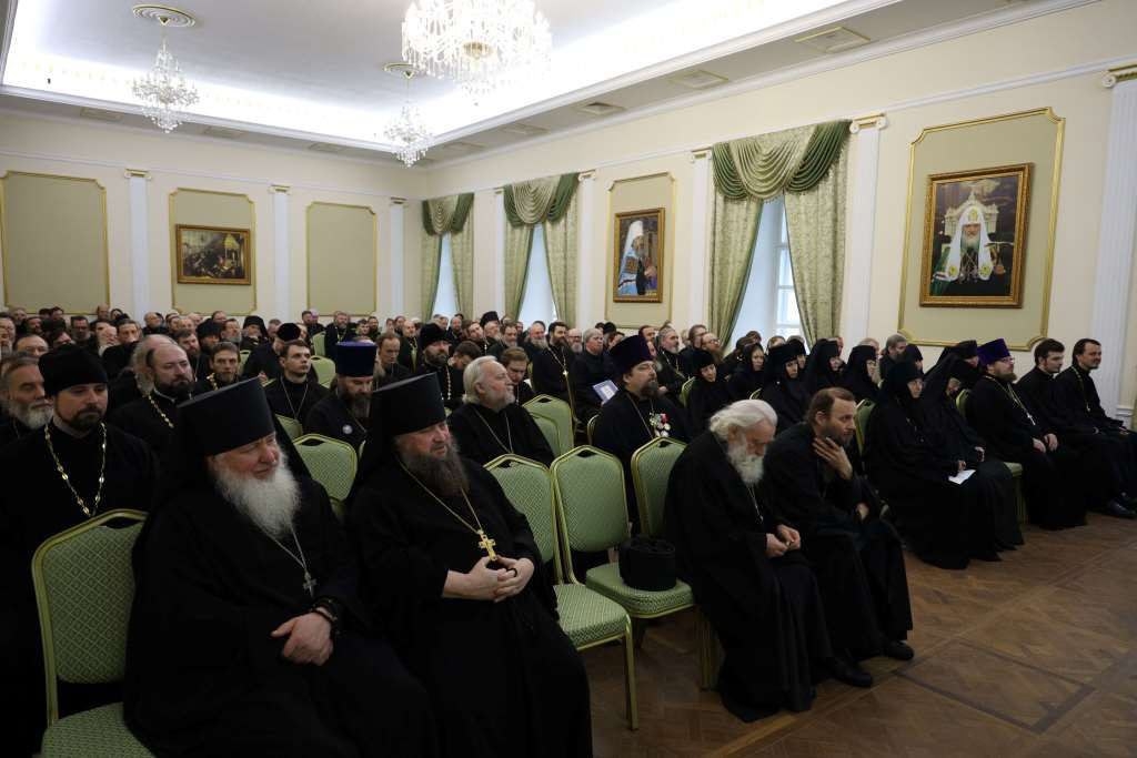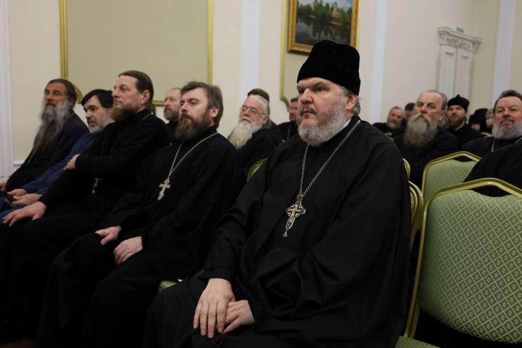 В собрании приняли участие епархиальные архиереи митрополии – архиепископ Песоченский и Юхновский Максимилиан и епископ Козельский и Людиновский Макарий, настоятели храмов митрополии, наместники и настоятельницы монастырей, а также миряне – представители приходов.