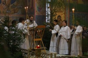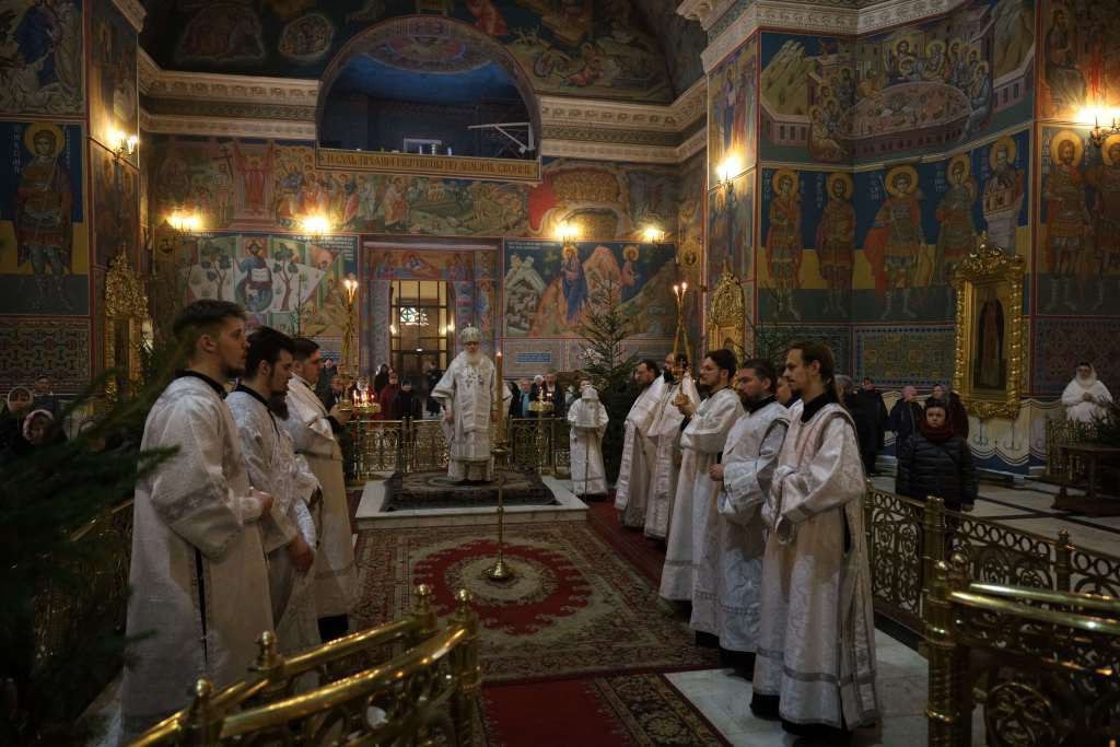 По завершении Божественной литургии, перед рождественской свечой, символизирующей Вифлеемскую звезду, были исполнены тропарь и кондак Рождества Христова.