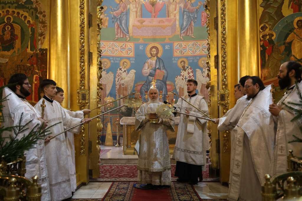 Обратившись к молящимся с архипастырским словом, митрополит Климент поздравил всех присутствующих с наступающим праздником и выразил надежду на то, что свет Божественной любви посетит сердце каждого верующего в день этого великого торжества.
