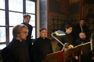 Богослужебные песнопения исполнил хор Калужской духовной семинарии под управлением воспитанника IV курса Карпенко Ивана и хор Калужского духовного училища под управлением преподавателя училища Морарь Марии Витальевны.