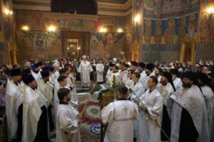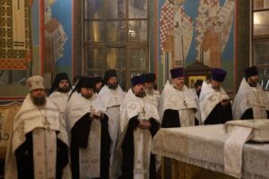 Во время вечернего богослужения был пропет Великий прокимен «Кто Бог Велий…» и прочитано Рождественское зачало Евангелия.