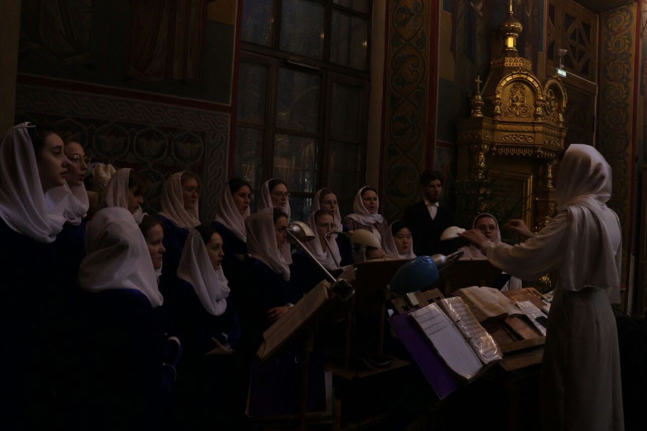 Богослужебные песнопения исполнил хор Калужской духовной семинарии под управлением воспитанника IV курса Карпенко Ивана и хор Калужского духовного училища под управлением преподавателя училища Морарь Марии Витальевны.