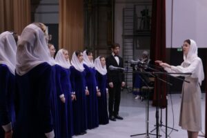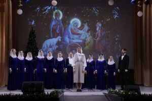 Вокально-хоровой ансамбль Калужского духовного училища под управлением преподавателя училища Морарь Марии Витальевны исполнил рождественские колядки и духовные песнопения.