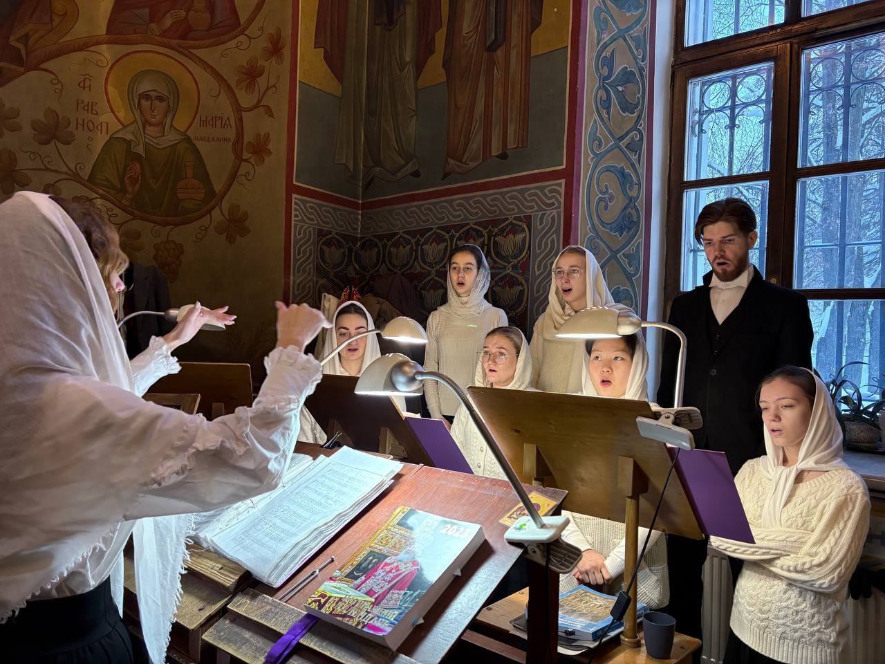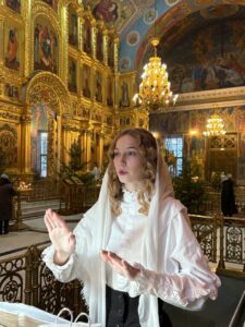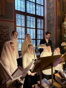 Богослужебные песнопения исполнил хор Калужского духовного училища под управлением воспитанницы IV курса Павловой Марии.