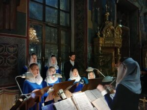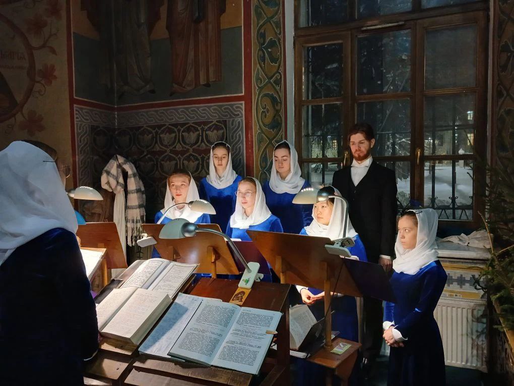 Богослужебные песнопения исполнил хор Калужского духовного училища под управлением воспитанницы IV курса Бойко Елизаветы.