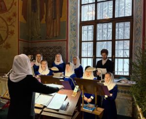 Богослужебные песнопения исполнил хор Калужского духовного училища под управлением воспитанницы IV курса Бойко Елизаветы.