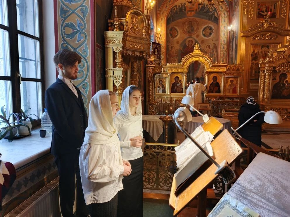 Богослужебные песнопения исполнила певческая группа Калужского духовного училища под управлением воспитанника III курса Орос Валерии.