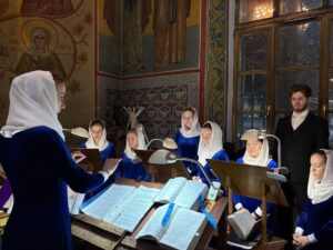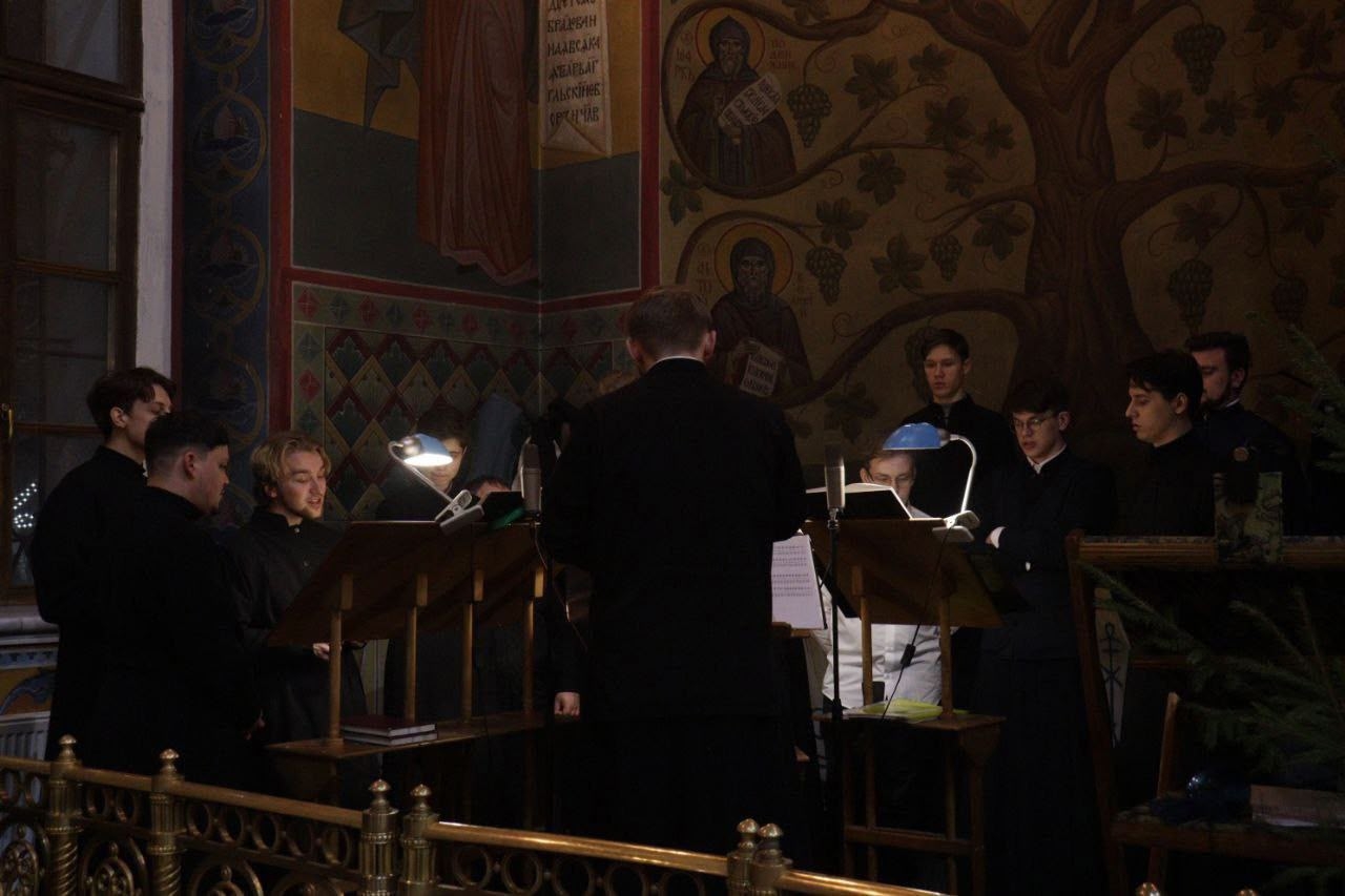 Богослужебные песнопения исполнил хор Калужской духовной семинарии под управлением воспитанника IV курса Карпенко Ивана и хор Калужского духовного училища под управлением воспитанницы IV курса Экономовой Марии.