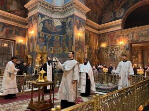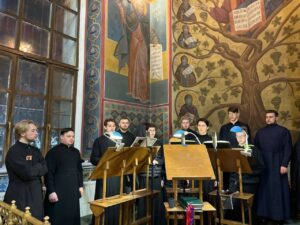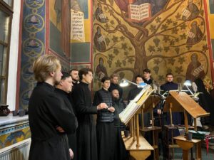 Богослужебные песнопения исполнил хор Калужской духовной семинарии под управлением воспитанника IV курса Матвеева Кирилла и хор Калужского духовного училища под управлением воспитанницы IV курса Павловой Марии.