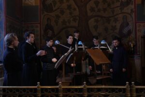 Богослужебные песнопения исполнил хор Калужской духовной семинарии под управлением воспитанника IV курса Матвеева Кирилла и хор Калужского духовного училища под управлением воспитанницы IV курса Павловой Марии.