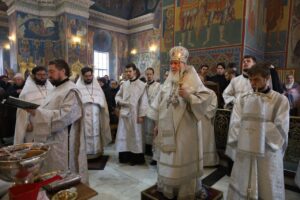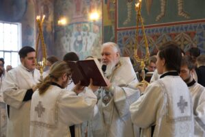 После сугубой ектении была прочитана молитва о Святой Руси, возносимая во всех храмах Русской Православной Церкви по благословению Святейшего Патриарха Московского и всея Руси Кирилла.