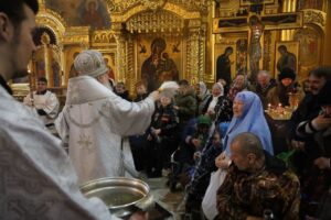 После Божественной литургии Его Высокопреосвященство совершил чин Великого освящения воды.