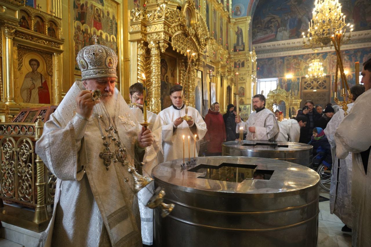 После Божественной литургии Его Высокопреосвященство совершил чин Великого освящения воды.