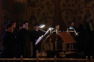 Богослужебные песнопения исполнил хор Калужской духовной семинарии под управлением воспитанника II курса Лавренова Василия и хор Калужского духовного училища под управлением воспитанницы IV курса Экономовой Марии.