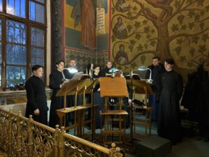 Богослужебные песнопения исполнил хор Калужской духовной семинарии под управлением воспитанника IV курса Матвеева Кирилла и хор Калужского духовного училища под управлением воспитанницы III курса Ремешевской Анастасии.