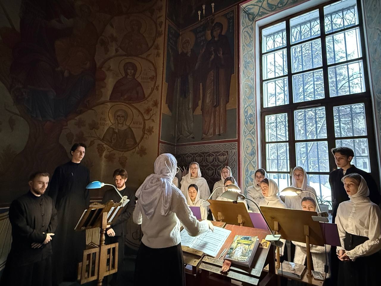 Богослужебные песнопения исполнил смешанный хор Калужской духовной семинарии и Калужского духовного училища под управлением воспитанницы III курса Ремешевской Анастасии.