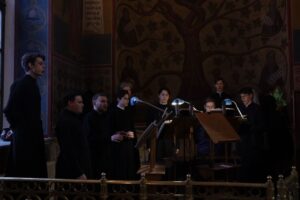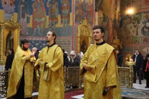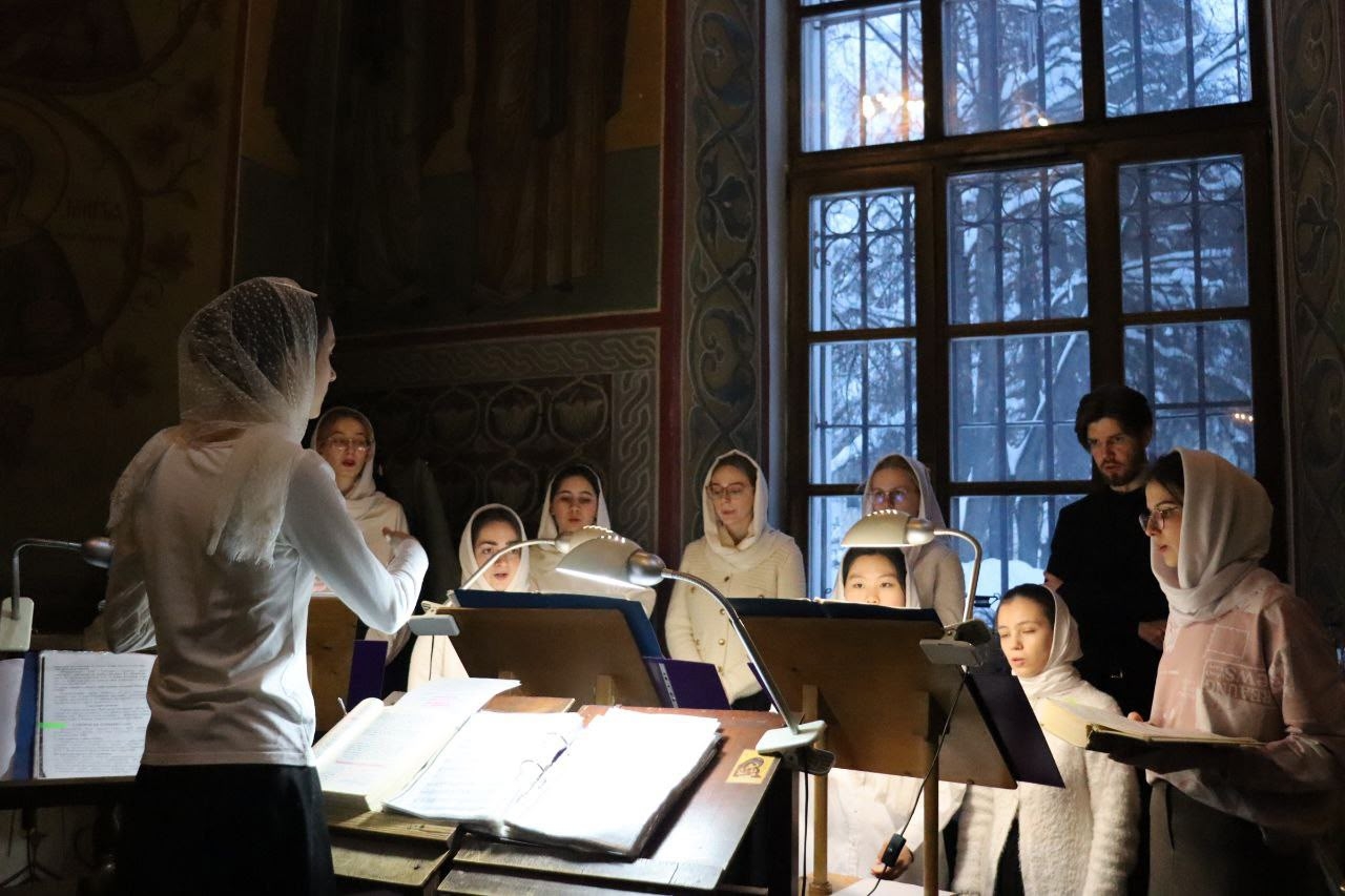 Богослужебные песнопения исполнил хор Калужской духовной семинарии под управлением воспитанника IV курса Карпенко Ивана и хор Калужского духовного училища под управлением воспитанницы III курса Орос Валерии.