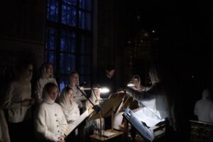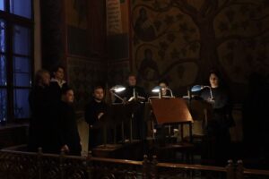 Богослужебные песнопения исполнил хор Калужской духовной семинарии под управлением воспитанника IV курса Карпенко Ивана и хор Калужского духовного училища под управлением воспитанницы IV курса Экономовой Марии.