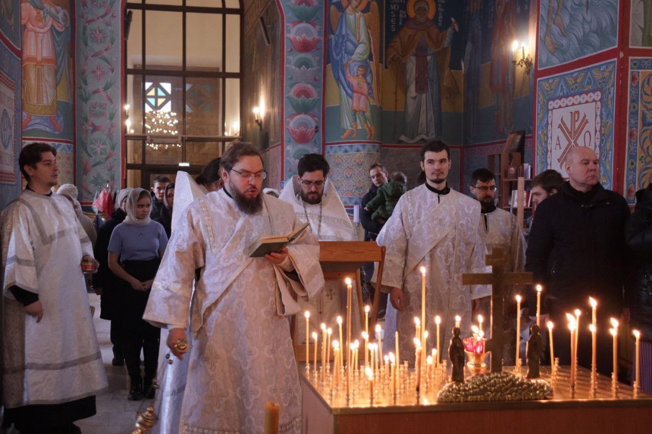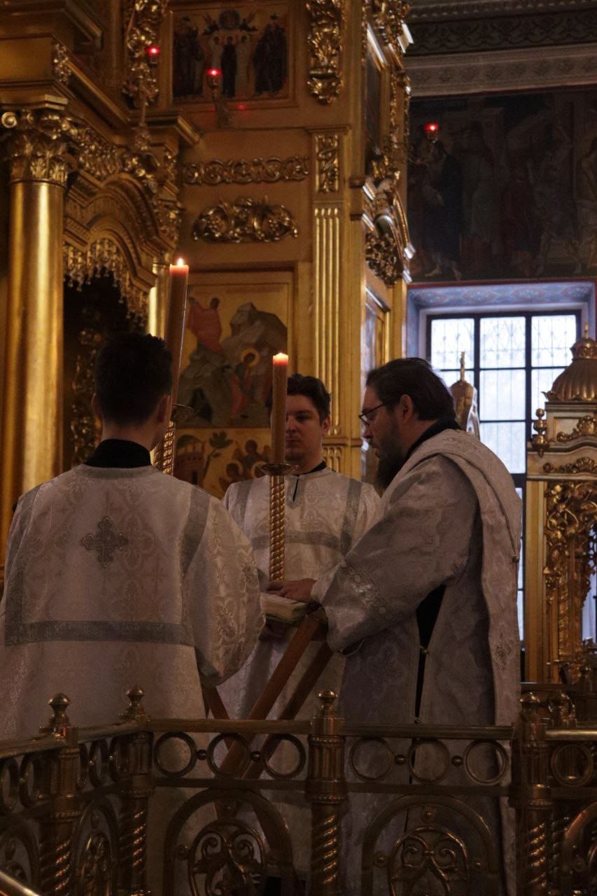 14 февраля 2026 года в Вселенскую родительскую субботу в Свято-Троицком кафедральном соборе города Калуги была совершена Литургия, которую возглавил ключарь собора иерей Максим Лихонин.