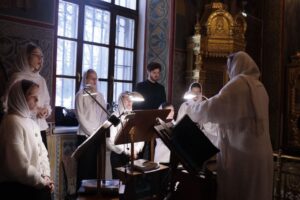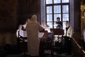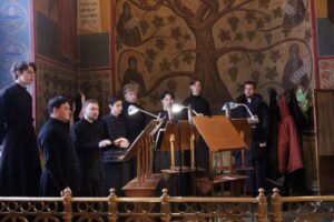 Богослужебные песнопения исполнил хор Калужской духовной семинарии под управлением воспитанника IV курса Карпенко Ивана и хор Калужского духовного училища под управлением воспитанницы IV курса Экономовой Марии.