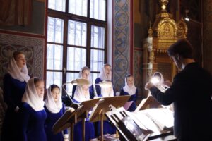 Богослужебные песнопения исполнил хор Калужской духовной семинарии под управлением воспитанника II курса Комарова Илариона и хор Калужского духовного училища под управлением воспитанника III курса Васильева Пантелеймона.