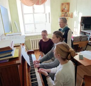 17 февраля 2026 года в Калужском духовном училище по подготовке регентов и иконописцев прошёл открытый урок по Церковному пению на IV курсе. Занятие провела преподаватель училища Тарасова Светлана Александровна.