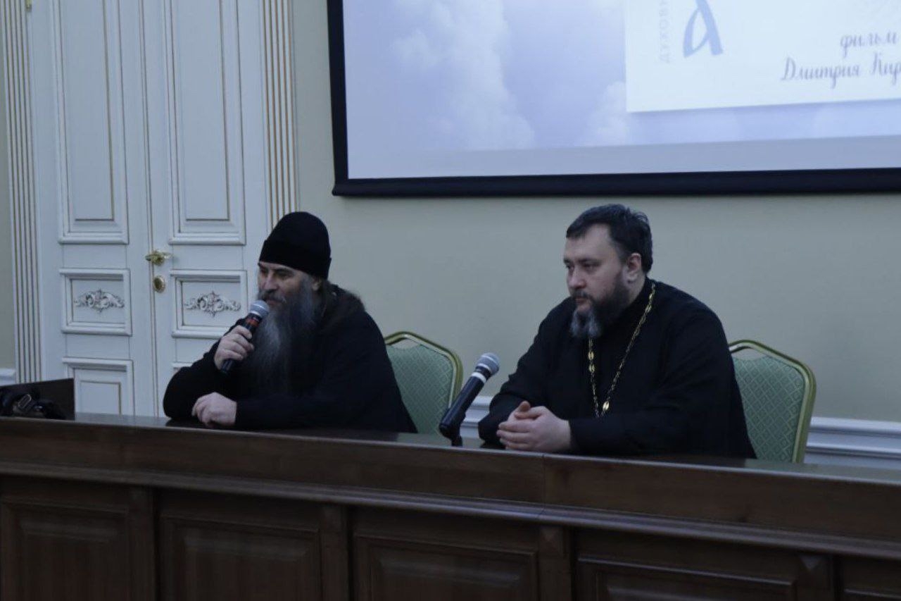 По окончании фильма наместник Спасо Нерукотворного монастыря села Клыкова архимандрит Михаил (Семенов) отвечал на вопросы и беседовал о фильме.