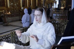 Богослужебные песнопения исполнил хор Калужской духовной семинарии под управлением воспитанника IV курса Матвеева Кирилла и хор Калужского духовного училища под управлением воспитанницы IV курса Экономовой Марии.