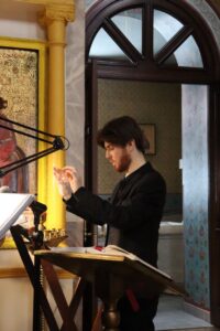 Богослужебные песнопения исполняли: приходской хор храма под руководством Межуевой Ольги Ивановны и студенты Калужского духовного училища под руководством воспитанника III курса Васильева Пантелеймона.