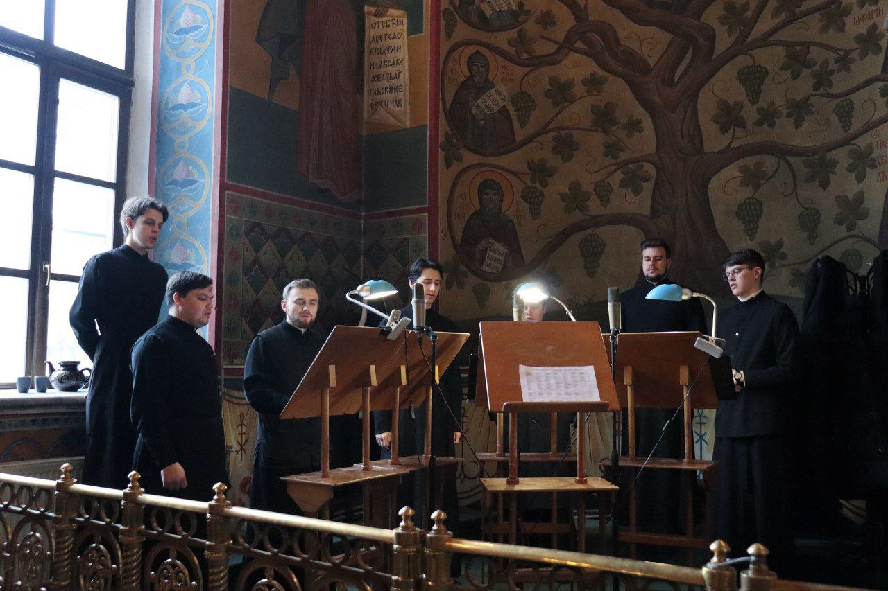 Богослужебные песнопения исполнил хор Калужской духовной семинарии под управлением воспитанника IV курса Карпенко Ивана и хор Калужского духовного училища под управлением воспитанницы III курса Орос Валерии.