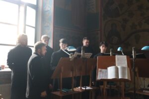 Богослужебные песнопения исполнил хор Калужской духовной семинарии под управлением воспитанника II курса Комарова Илариона и хор Калужского духовного училища под управлением преподавателя училища Морарь Марии Витальевны.