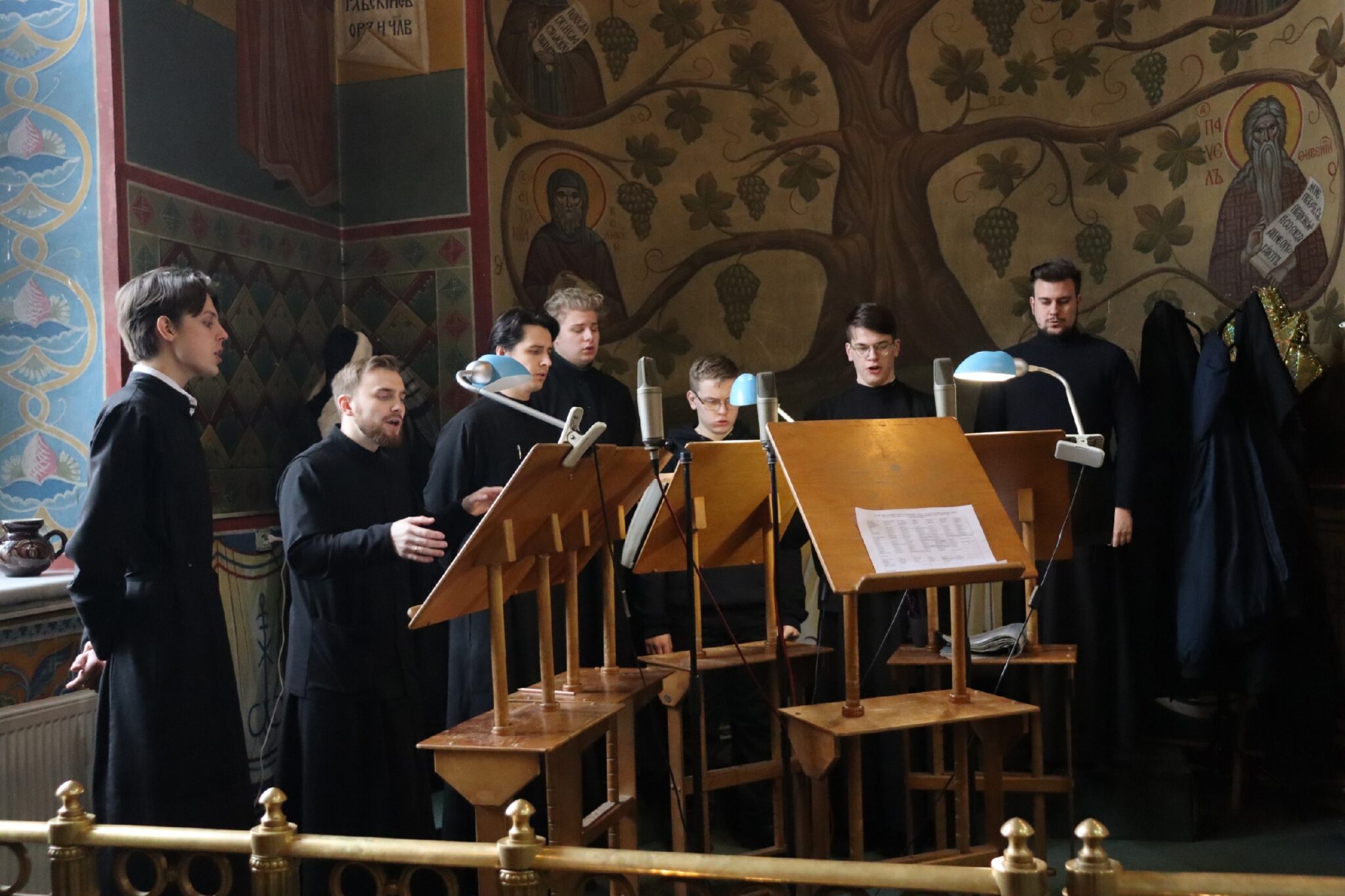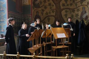 Богослужебные песнопения исполнил хор Калужской духовной семинарии под управлением воспитанника IV курса Карпенко Ивана и хор Калужского духовного училища под управлением преподавателя училища Морарь Марии Витальевны.