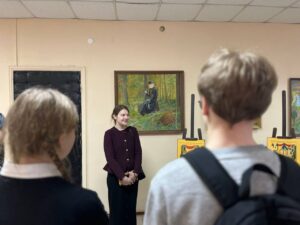- 4 марта 2026 года проректор по учебной работе Чеппель Мария Анатольевна и воспитанница III курса отделения «Живопись» (Иконописное) Галуцких Ефросиния провели увлекательную экскурсию по иконописной мастерской для учеников 10 Б класса МБОУ «СОШ №5» г. Калуги 04.03.2026