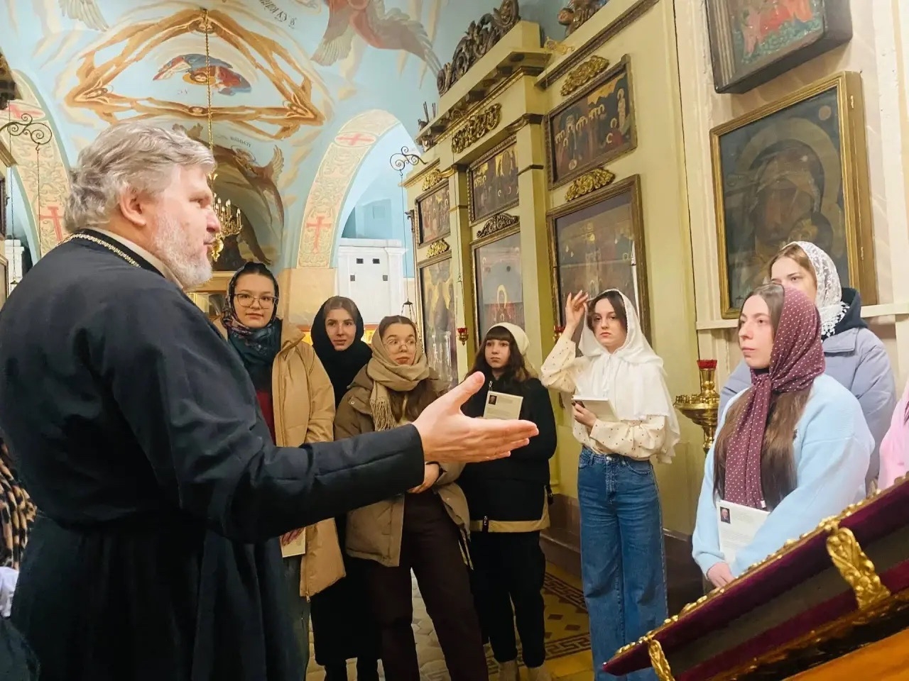 Протоиерей Иоанн Паюл рассказал учащимся о Великом посте и его важности в духовной жизни, значении храма для христианина. В конце беседы отец Иоанн ответил на вопросы студентов, касающиеся брака, языка богослужения, понимания нагорной проповеди Спасителя.