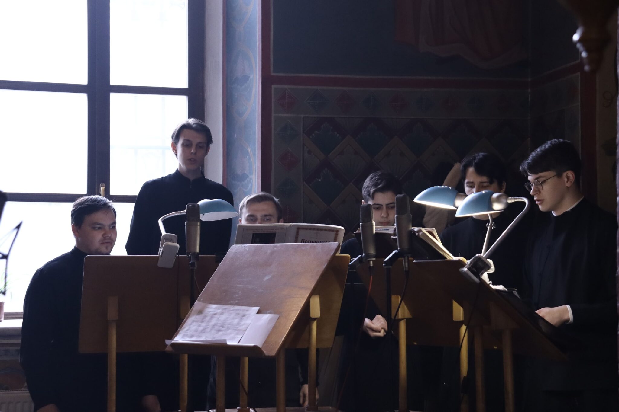 Богослужебные песнопения исполнил хор Калужской духовной семинарии под управлением воспитанника IV курса Карпенко Ивана и хор Калужского духовного училища под управлением воспитанницы III курса Орос Валерии.