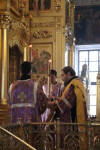 8 марта 2026 года в Неделю 2-ю Великого поста, памяти святителя Григория Паламы, в Свято-Троицком кафедральном соборе города Калуги была совершена Литургия, которую возглавил иеромонах Феофан (Сурин).