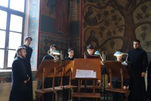 Богослужебные песнопения исполнил хор Калужской духовной семинарии под управлением воспитанника II курса Комарова Илариона и хор Калужского духовного училища под управлением воспитанницы III курса Орос Валерии.