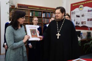 В дар библиотеке Калужской духовной семинарии М. П. Коновалова передала новое издание «Икона Божией Матери „Спорительница хлебов“» — двухтомник, выпущенный обычным печатным шрифтом и шрифтом Брайля.