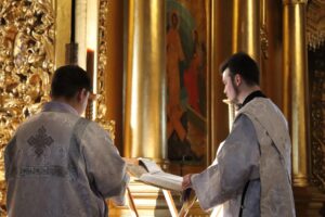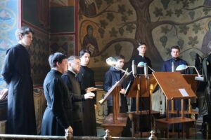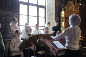 Богослужебные песнопения исполнил хор Калужской духовной семинарии под управлением воспитанника IV курса Карпенко Ивана и хор Калужского духовного училища под управлением воспитанницы IV курса Бойко Елизаветы.