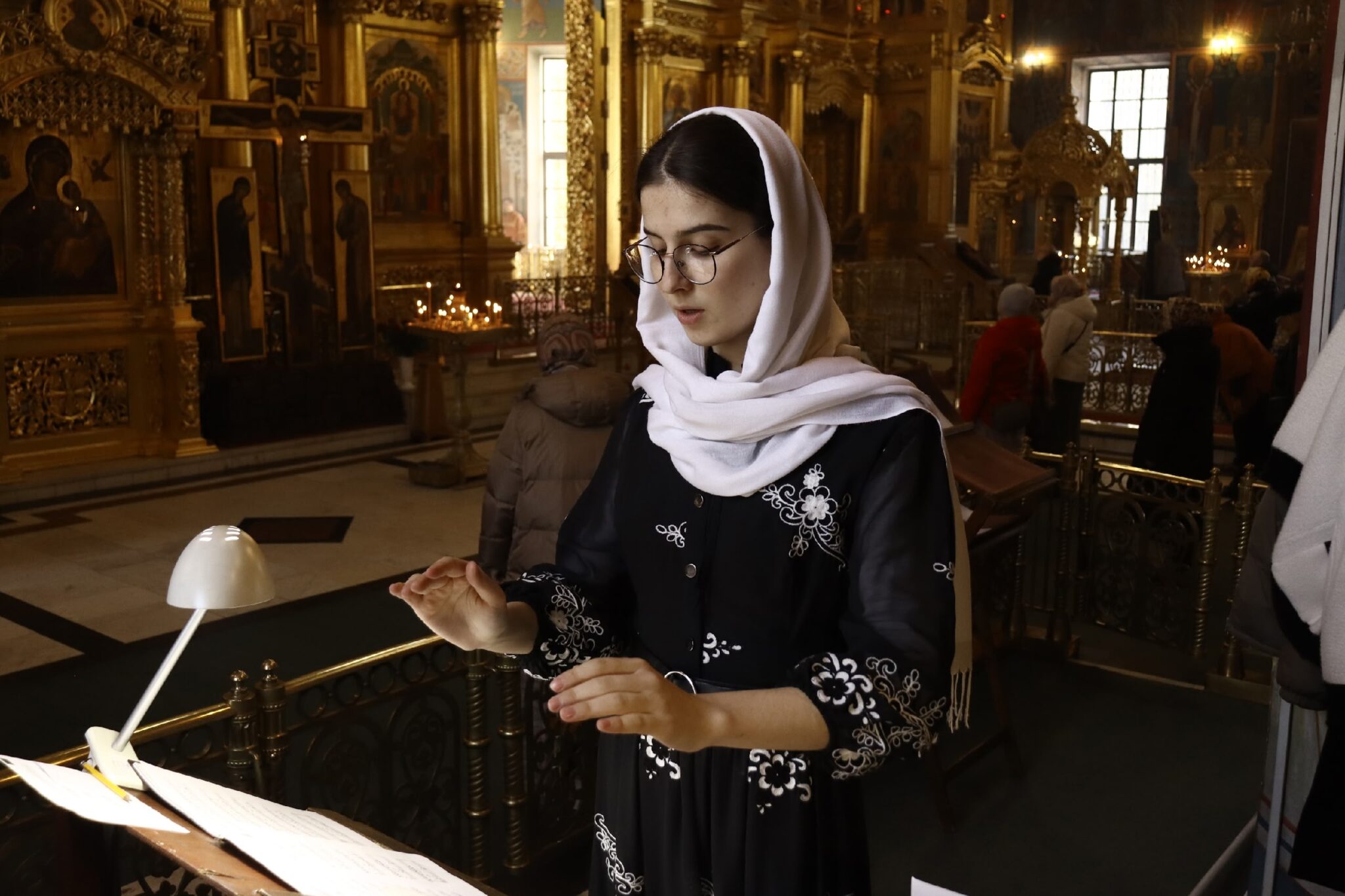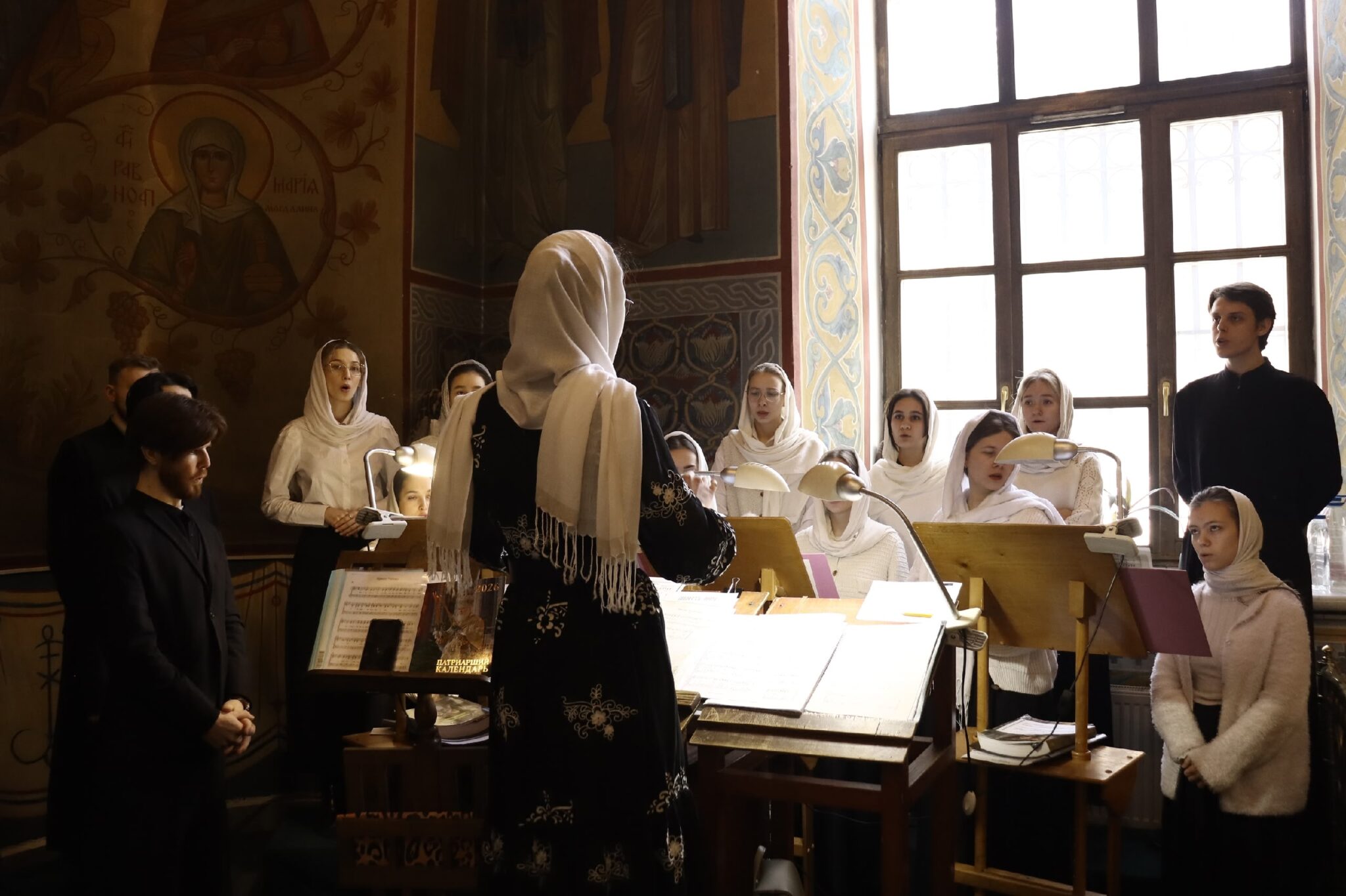 Богослужебные песнопения исполнил смешанный хор Калужской духовной семинарии и Калужского духовного училища под управлением преподавателя училища Морарь Марии Витальевны.