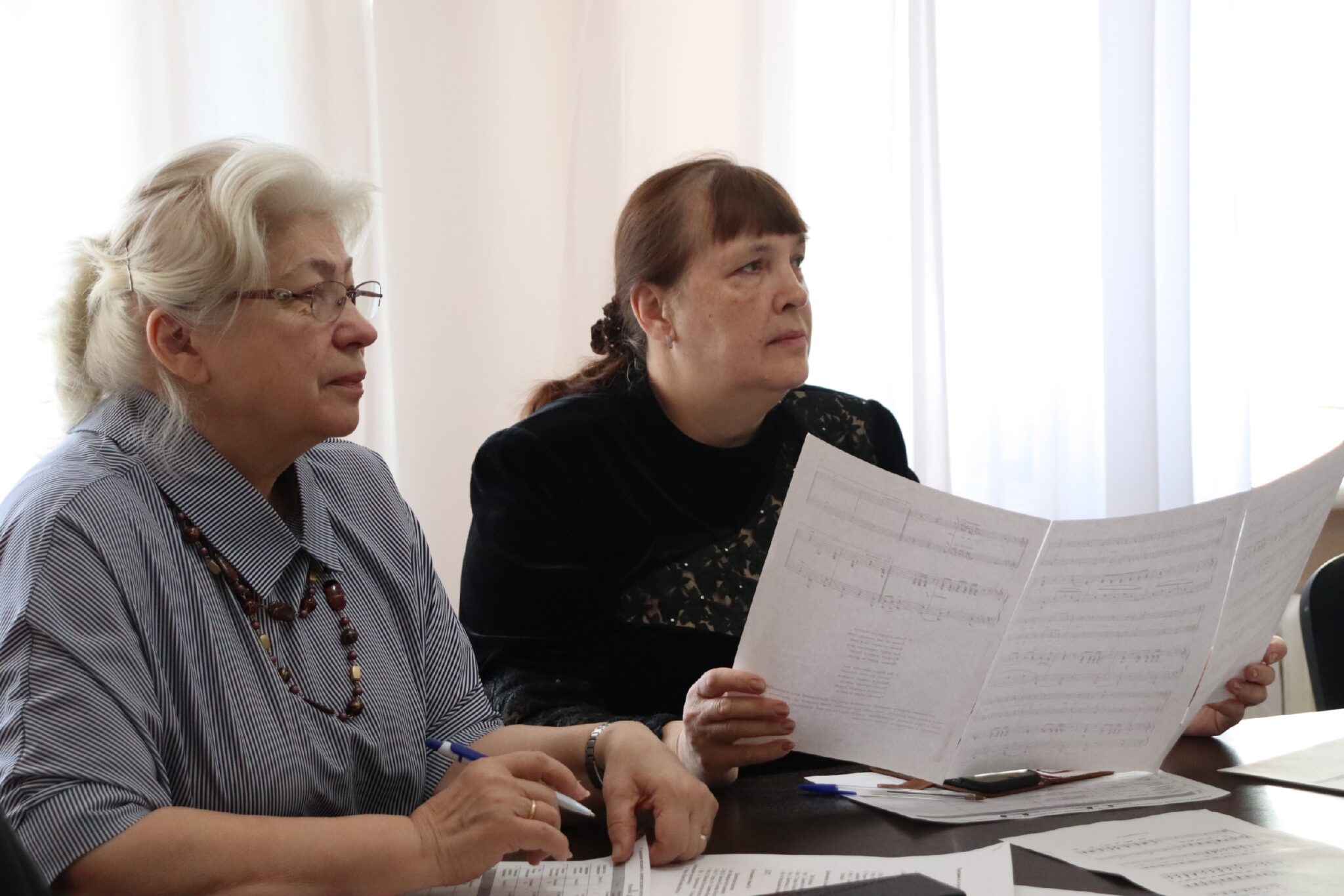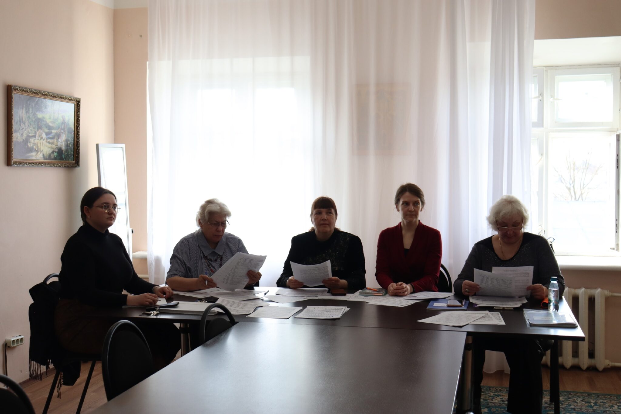 Комиссию составили: проректор по учебной работе Чеппель М.А., заведующий отделением «Хоровое дирижирование» (Регентское) Зотова И.А., методист Коркина Л.Н., преподаватели: Музыченко Е.Е., Дубова Е.В. и Долгих М.С. Аккомпанировала Соколова Е.В. и Михновец К.Г.