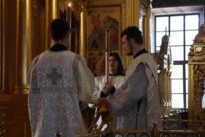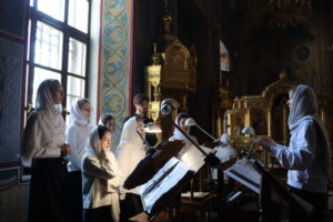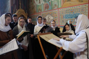 Богослужебные песнопения исполнил хор Калужской духовной семинарии под управлением воспитанника II курса Комарова Илариона и хор Калужского духовного училища под управлением воспитанницы III курса Ремешевской Анастасии.