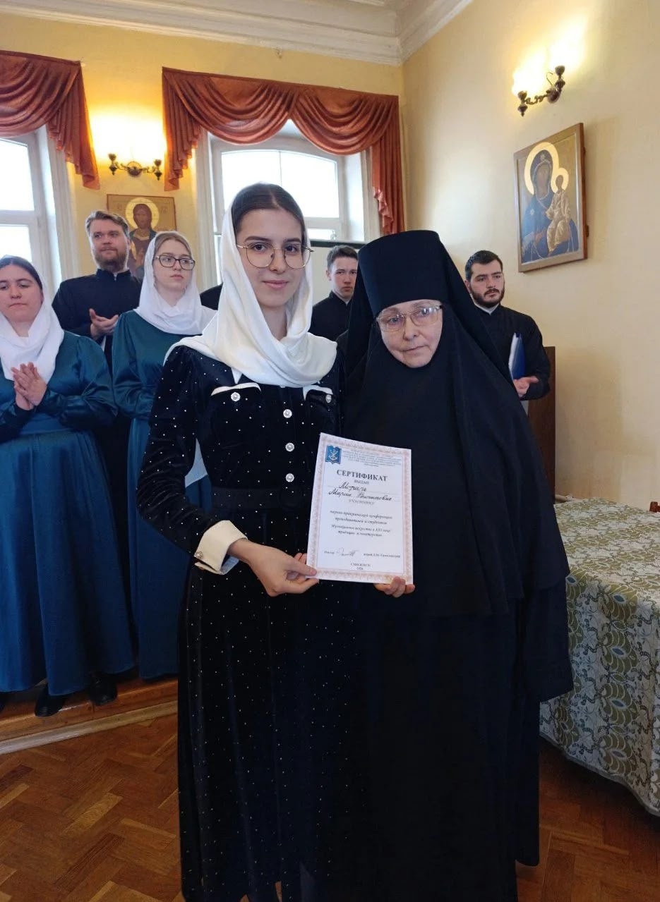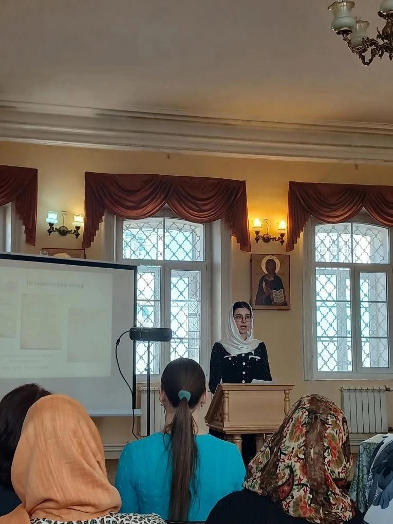 — Орос Валерия, студентка 3‑го курса, выступила с докладом «Регентская деятельность по подбору репертуара для разных составов клироса малых церковных приходов».