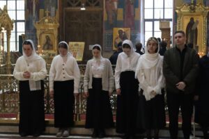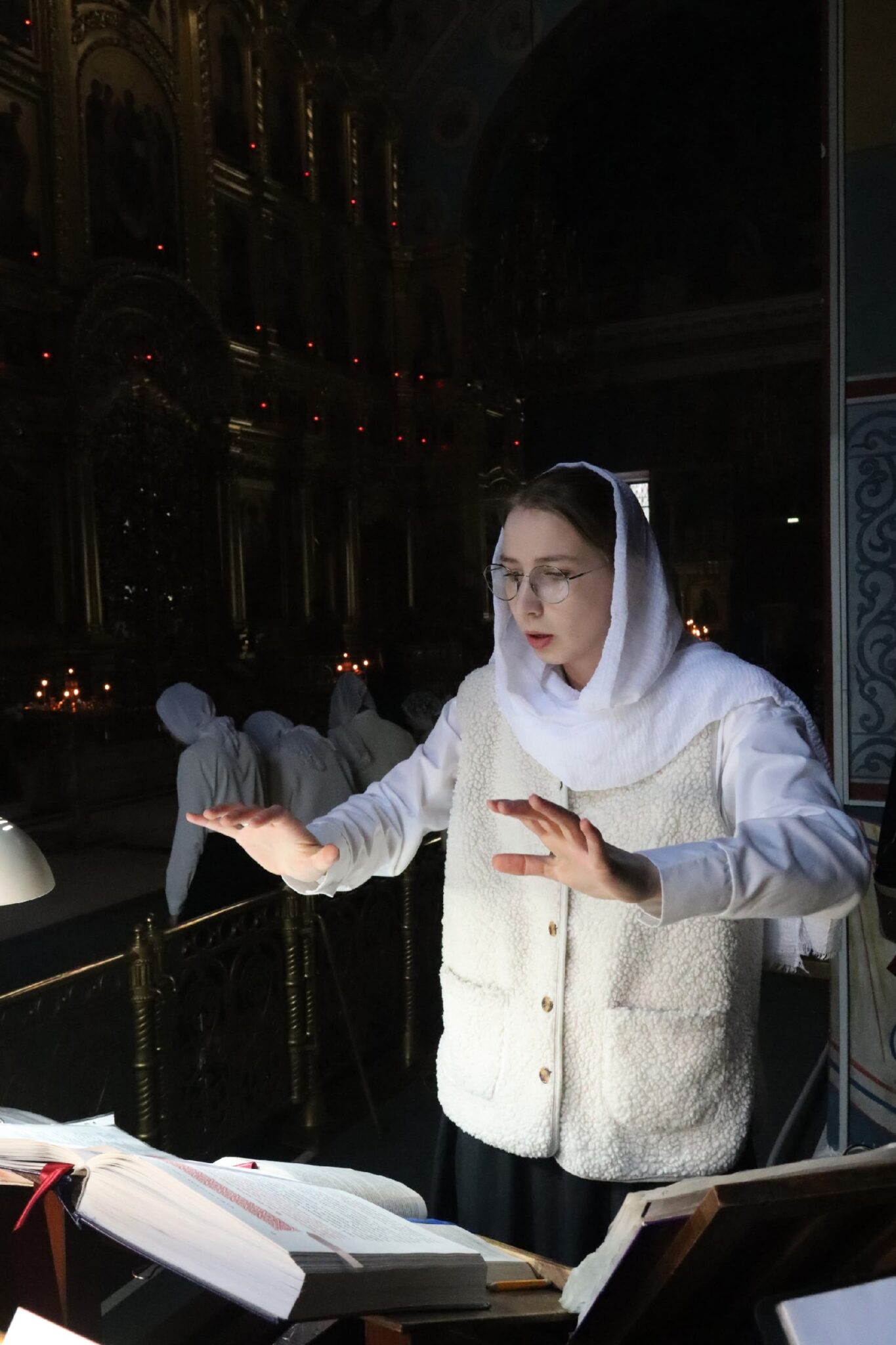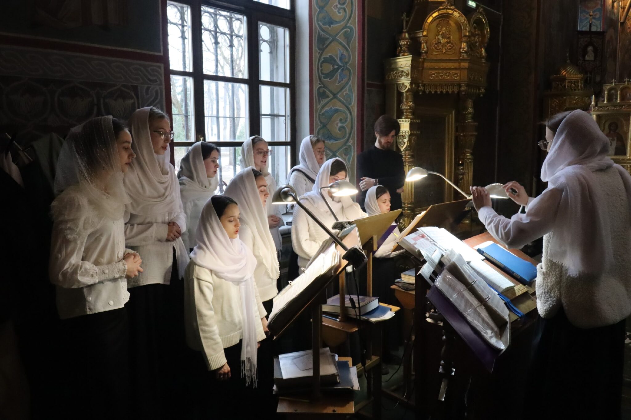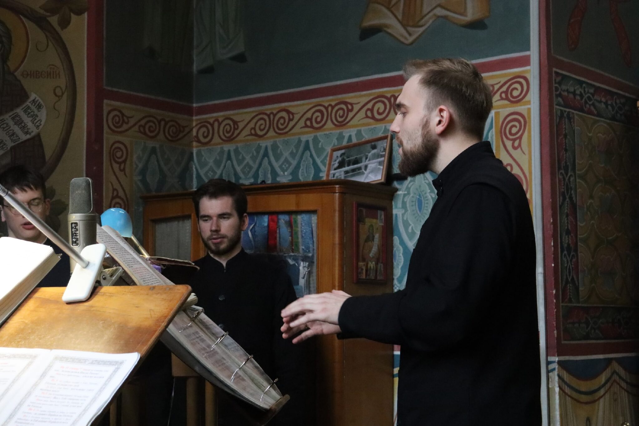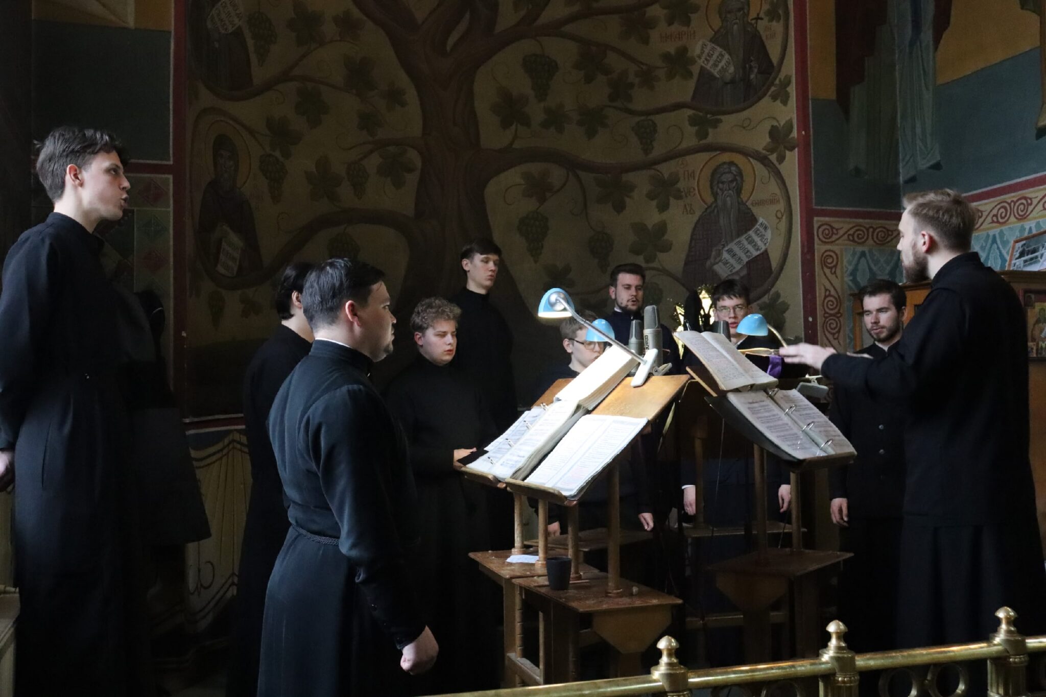 Богослужебные песнопения исполнил хор Калужской духовной семинарии под управлением воспитанника IV курса Карпенко Ивана и хор Калужского духовного училища под управлением воспитанницы IV курса Экономовой Марии.