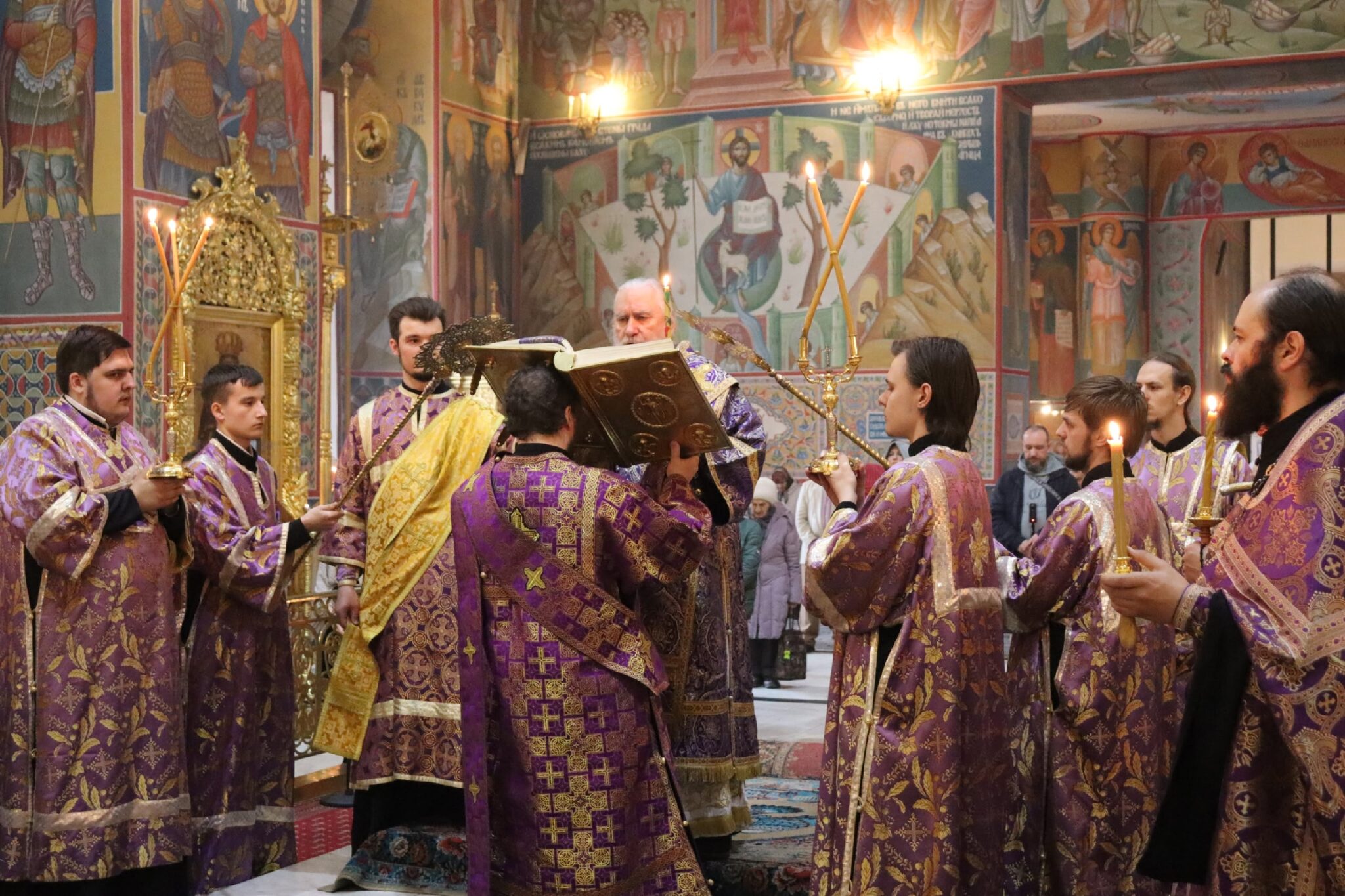 Вечером 28 марта 2026 года, в канун 5-й Недели Великого поста, митрополит Калужский и Боровский Климент всенощное бдение в Свято-Троицком кафедральном соборе города Калуги.