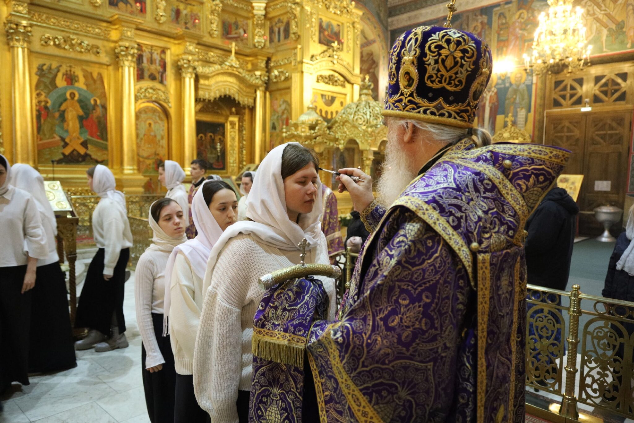 На утрене архипастырь, после чтения Евангелия, помазал верующих освященным елеем.